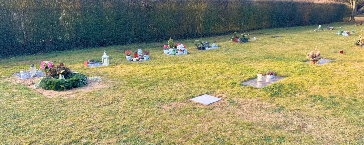 - Bei dieser Grabart handelt es sich um eine Sargbeisetzung in einem pflegefreien Wiesengrab.